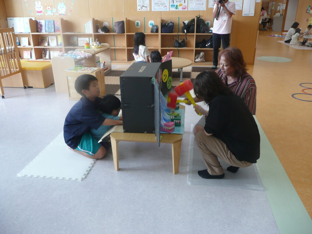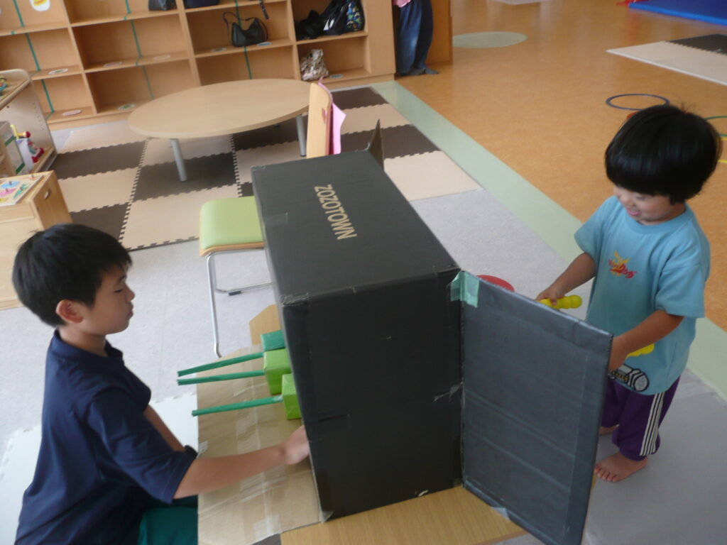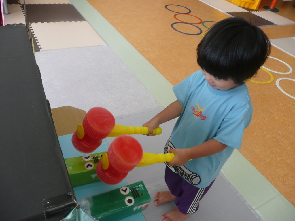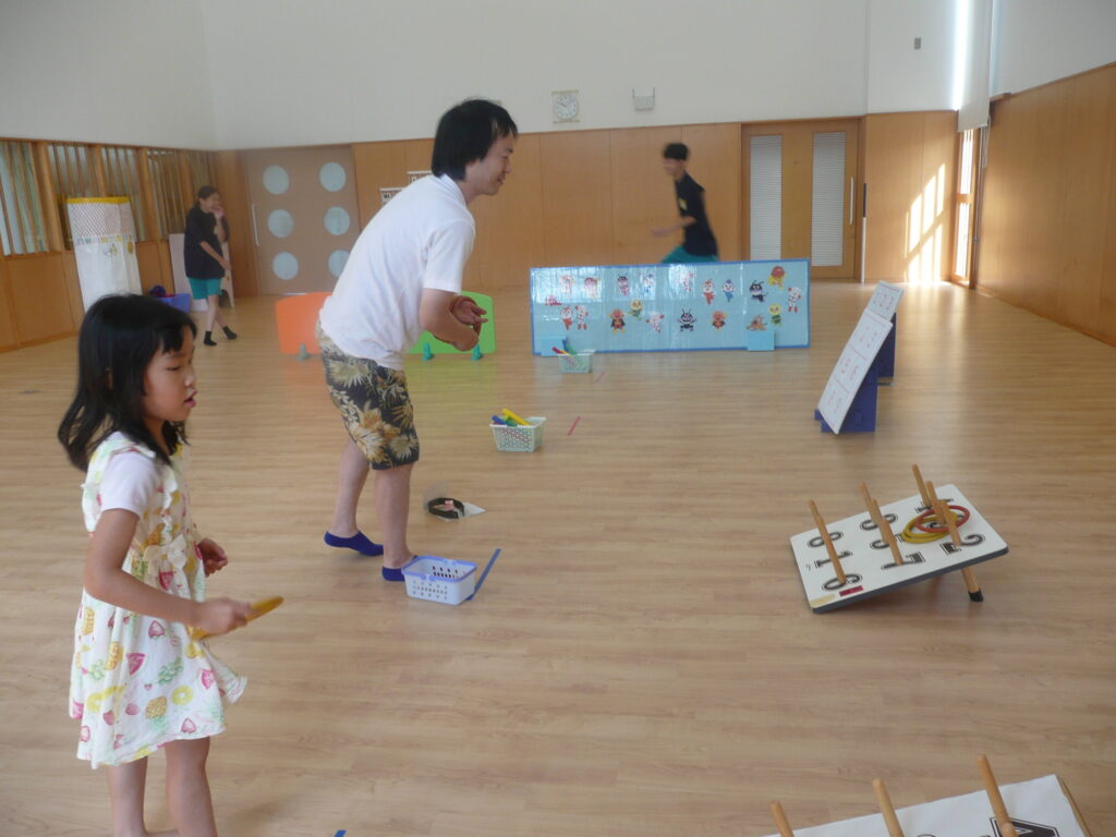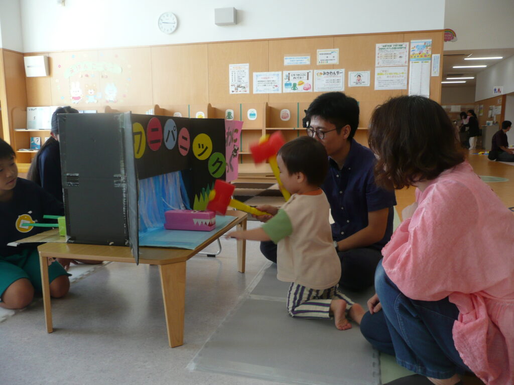 9月27日(土)、三川町中高生ボランティアサークル「来夢来人」の3名が訪問してくれました。支援センターでは、おまつりごっこをしました。お面づくりとブレスレットづくりの製作活動、ワ二ワ二パニック、ソフトダーツ、輪投げの見守りをしてもらいました。お兄さんお姉さんたちに「すごい!上手い!」と言われると子どもたちはとても嬉しそうでした。折り紙が得意なお兄さんは、子どもたちと一緒に折り紙を折っていました。頼もしい来夢来人のお兄さんお姉さん、ありがとうございました!