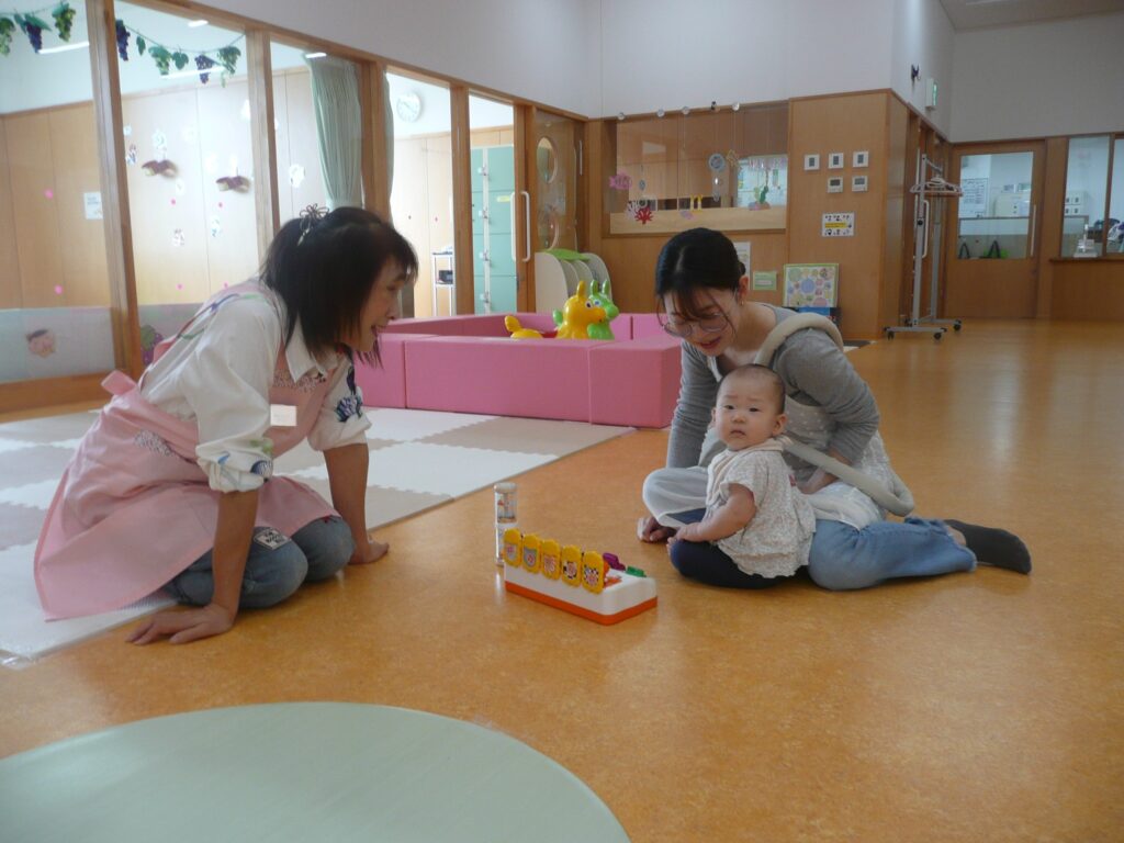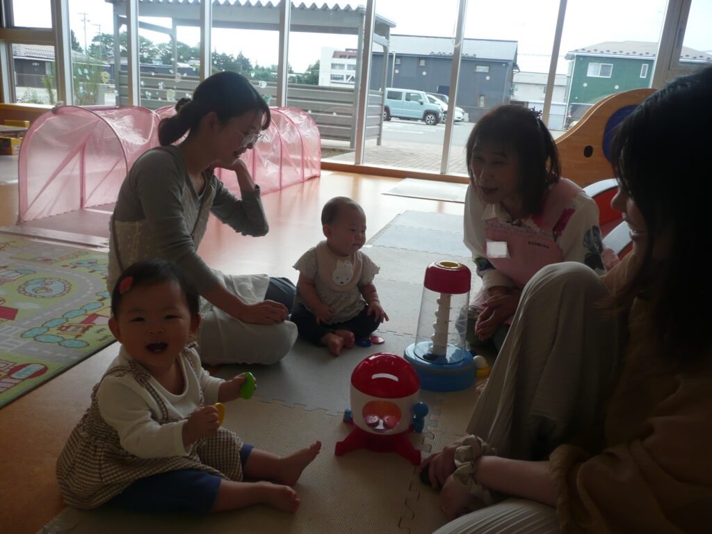 お二人の温かい関わりに赤ちゃんたちは安心してたくさん動いて遊ぶことができました。少し大きなお姉さんも更女さんとすっかり仲良しになり楽しい笑い声が響いていました♡