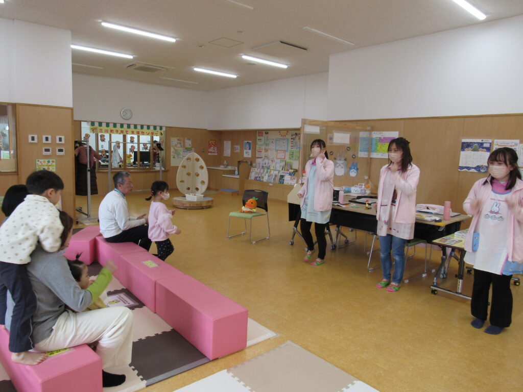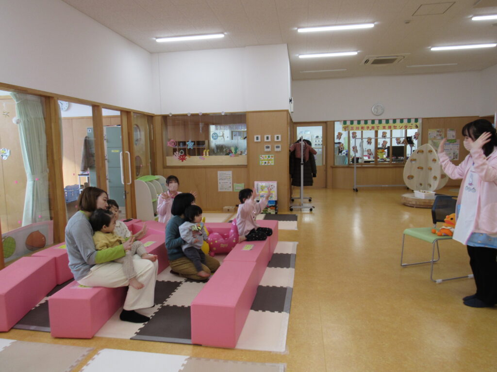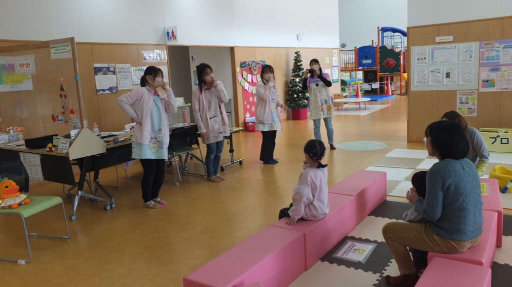 22日(月)は、なかよしタイムの時間でした。グーチョキパーの手遊びの後、「コロちゃんのクリスマス」を読み聞かせ♬ きょうは、まちにまったクリスマス・イブ。コロちゃんも、ツリーのかざりつけをてつだいます。そして最後は・・・というお話。絵本の後は、「赤鼻のトナカイ」を一緒に踊りました。みんな楽しそうに踊っていました。みんなのもとにサンタクロースが来ますように!素敵なプレゼントが届くと良いですね❄ 次回のなかよしタイムは、1月19日(月)です。来年もなかよしタイムにみなさん是非遊びに来てください♪